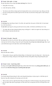 - Tập viết câu đơn nghĩa – rõ ràng – không ẩn dụ. Tập viết câu cho các mục đích rõ ràng như kiểm tra chính tả, viết code, mô tả sản phẩm… Sau khi đưa ra Prompt đơn nghĩa, người dùng có thể yêu cầu AI diễn đạt lại ý hiểu của nó, hoặc đánh giá thông qua phần trả lời của AI.