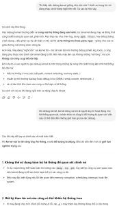 Ví dụ như để tìm hiểu về kỹ thuật Biểu đạt nội dung – giao tiếp sâu với AI, mình đã mất hàng nghìn lần lặp hỏi đáp với AI. Từ brainingstorming, tóm tắt các nghiên cứu khoa học, cụ thể hóa phương pháp tập luyện, tiêu chuẩn đánh giá.